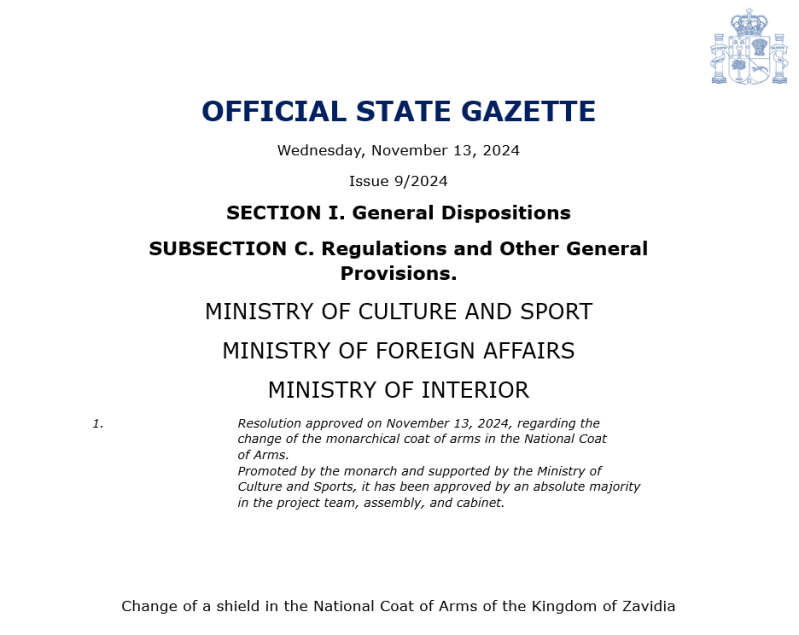 Resolution approved on November 13, 2024, regarding the change of the monarchical coat of arms in the National Coat of Arms.